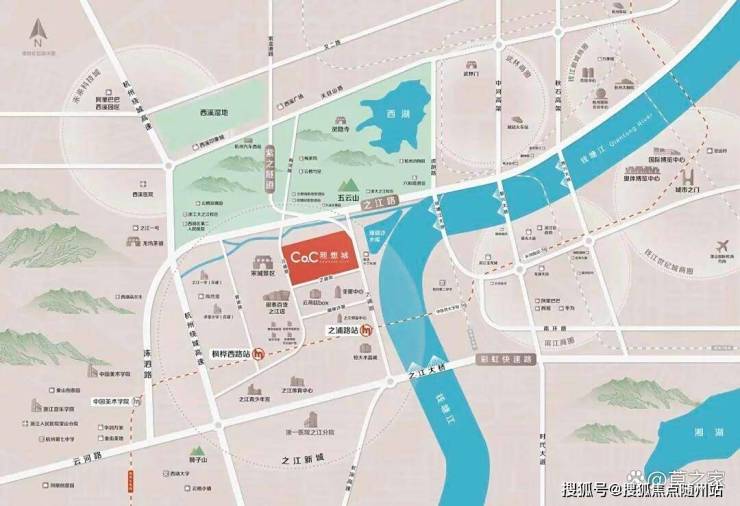 CoC理想城的宝藏之处就在于,它不仅占据着稀缺的一线钱塘江景,还背靠着杭州老牌风景的西湖群山。