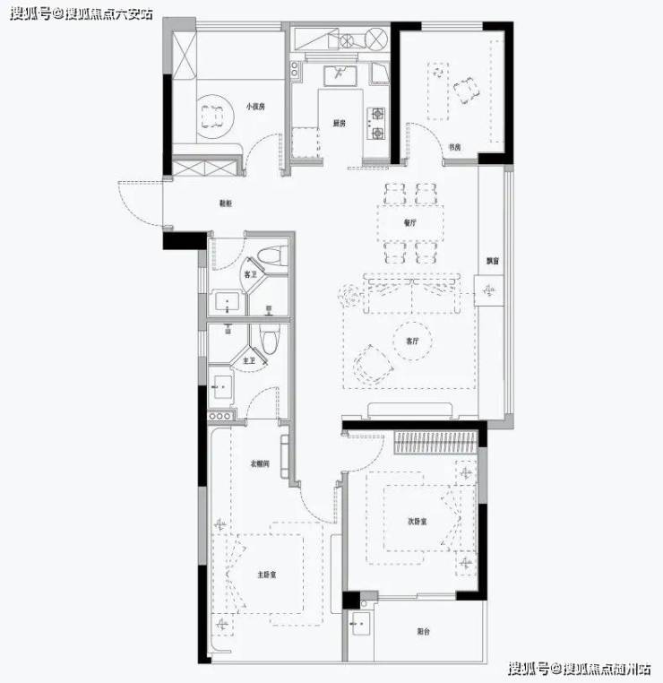 (建面约)97㎡的全明边套三房,是一个很少出现在边套的面积段,南向双联阳台宽约6.4米,堪称刚需户型中的超尺呈现了。