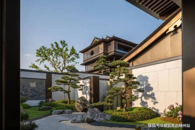 从整个动线布局来看,设计采用了经典的“巷门-院门-宅门”三进制院落格局,以江南院落再现东方传统礼序。从园区巷门开始层层递进,到一户一府的院门,再至入户宅门,表现出大户人家的归家气场,带来一种尊贵秩序的仪式感,也将中式生活的画卷次第展开。