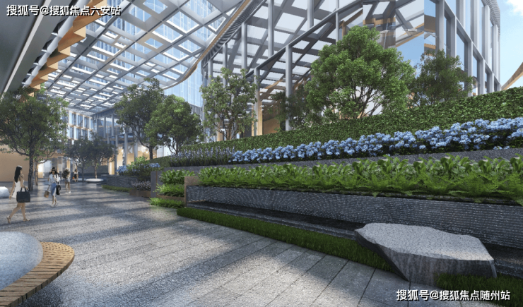 “城市客厅”作为整个场地的主要活力引擎。在地面层,它是城市花园;在各个广场上,它是进出场地中心的入口,连接着场地内外;