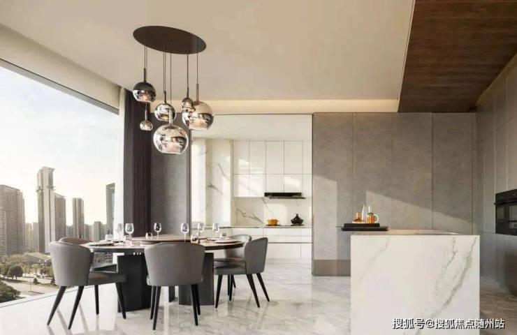 由CCD郑中设计事务所操刀的样板间,宛如一座奢华秀场,凸显了现代奢华和品味的精髓。88方的超大客餐厅,270度瞰景视野,19米双面采光,客厅都是L型采光的“无柱转角落地玻璃厅”,每一场轻歌曼舞的派对,背景都带着“H”标的奥体地标群。