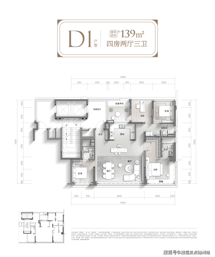 约139方四房三卫户型,作为改善王牌,完美契合高端客群需求。四开间朝南,南向面宽约14m,最大化引入阳光清风;双套房三卫设计,从容应对三代同堂的居住需求;餐客厅一体化连接北向阳台,南北通透,空间开阔感倍增。更值得一提的是,两个户型得房率均高于同区域同类型项目,同样的购房预算,享受进阶的生活品质。
