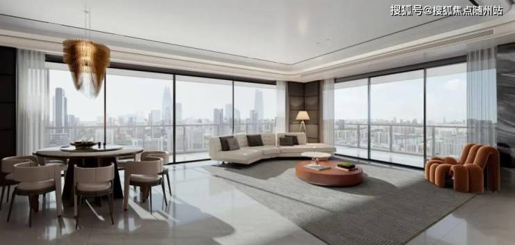 在约18m南向四面开间+270°IMAX视野的加持下,恍若走进湾流G800的全景驾驶舱,自由驰骋云端,向内触及世家的生活领域,向外鎏金繁华尽在眼前,宁波中心、阪急、NFCC等触手可及。