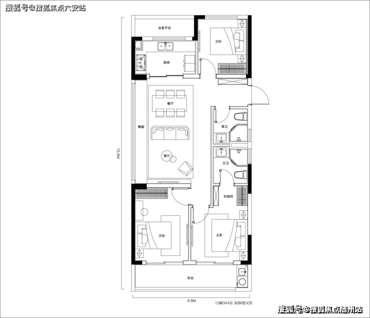 约100㎡户型点评:三房两厅两卫,南向四开间阳光户型,完整功能大三房 双飘窗,南向双开间 大阳台套房式主卧 全明双卫;