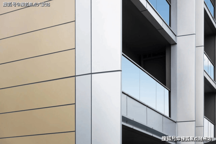 项目立面采用四面大面铝板+玻璃幕墙,搭配机翼型铝板符号,形成独特的“高技派”建筑风格。北立面突破性使用全玻璃幕墙,搭配金属线条点缀,既提升私密性,又赋予建筑现代感与高级美学。