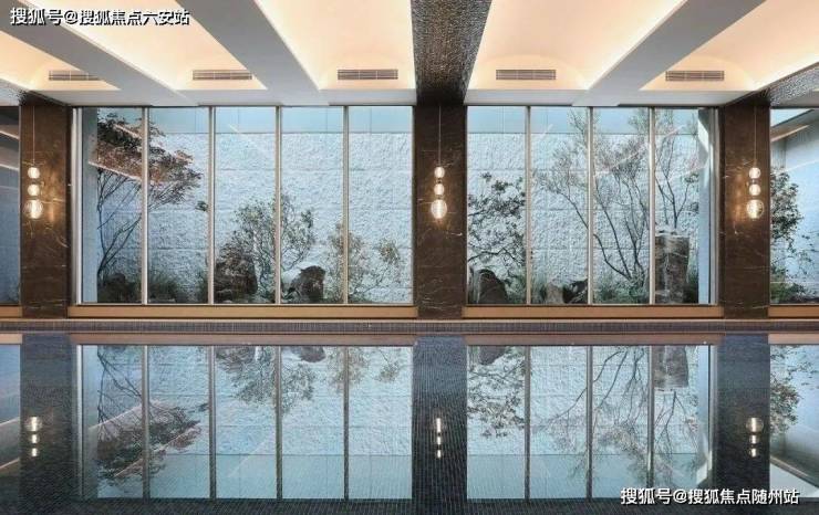 泳池、健身、喷泉花园、风雨廊、层叠式现代风格景观,所在公区一应俱全,极其“住宅风”的设计语言,又远比住宅的可使用面积和人均配套奢侈得多;