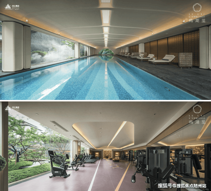 还有一座被命名为「湖山间」的下沉式CLUB,营造丰富的功能空间:恒温泳池、健身房、瑜伽室,还有壁球室、茶室、童玩区……这般媲美星级酒店的配置,是鸣湖里关于高阶圈层的生活方式表达。