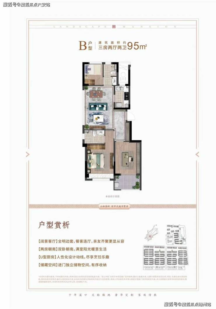 首先是室内尺度,以主力建面约95㎡洋房户型为例,不仅是三房两厅两卫的全明布局,还做出了奢阔一体化大边厅!