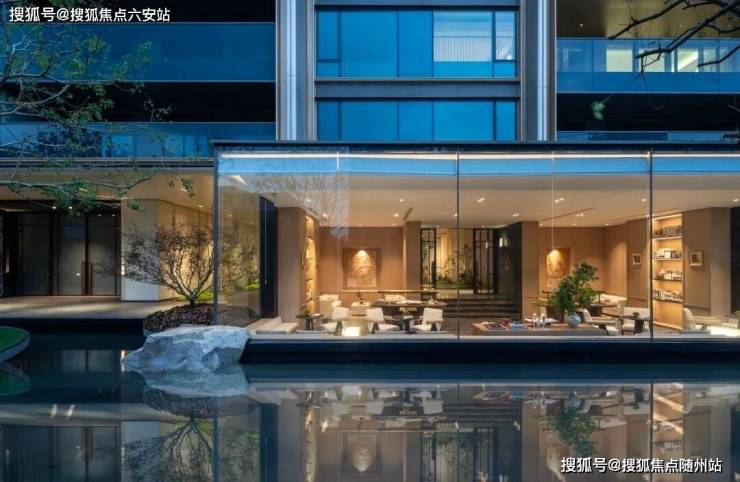 约1500㎡的下沉式会所“隐松庭”是项目的核心亮点,灵感源自纽约安缦酒店。会所中庭以《溪山行旅图》为蓝本,打造约7米高的溪山流瀑,配以5棵造型黑松,重现宋画意境。功能上,恒温泳池、健身房、私宴厅、书吧等空间一应俱全。