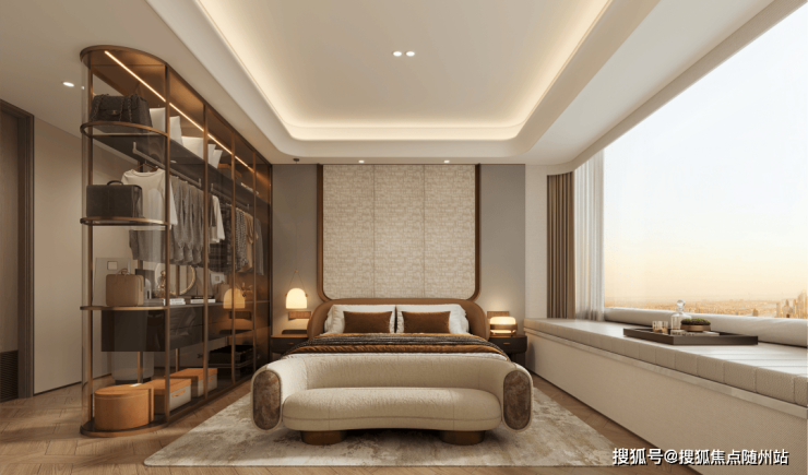 四是极品主卧,我更想称之为任性宠爱自己的「女王空间」:泡澡的大浴缸不管用不用但必须拥有;互不干扰的双台盆必须要有;超大衣帽间更必须拥有。还带有270度的转角飘窗,增加采光和景观视野。
