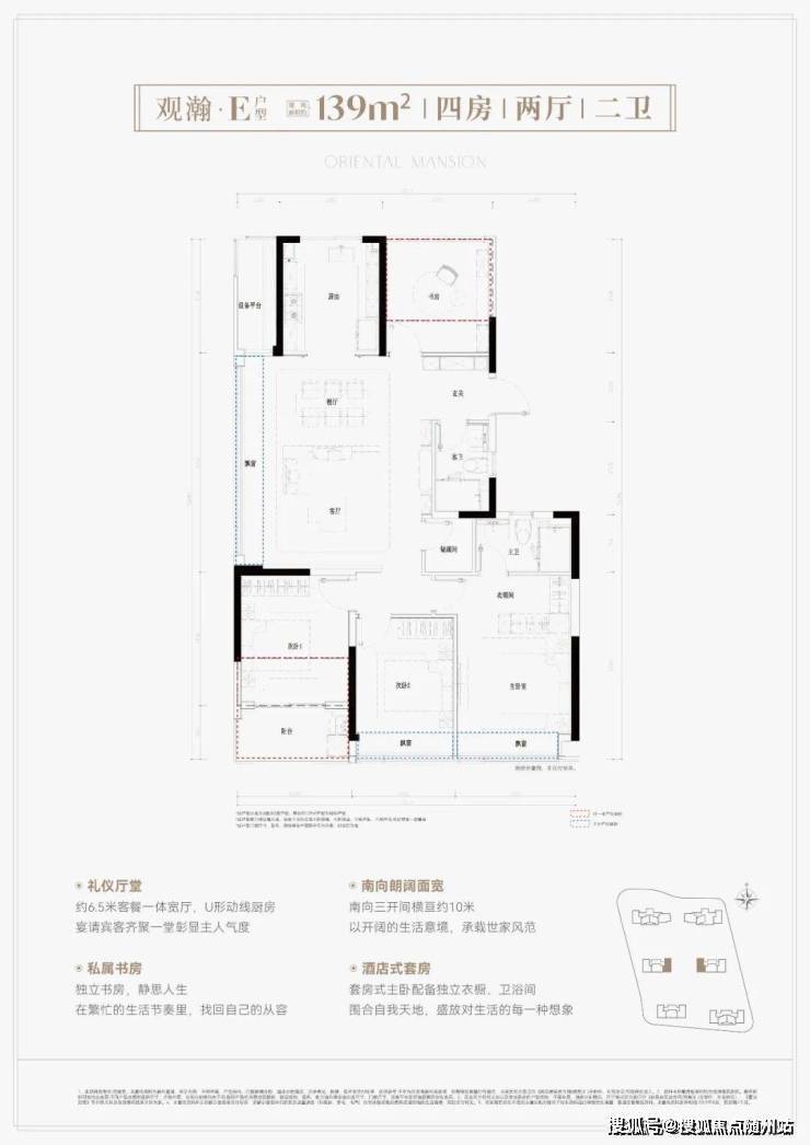 其中,139平竖厅户型亮点分析:
