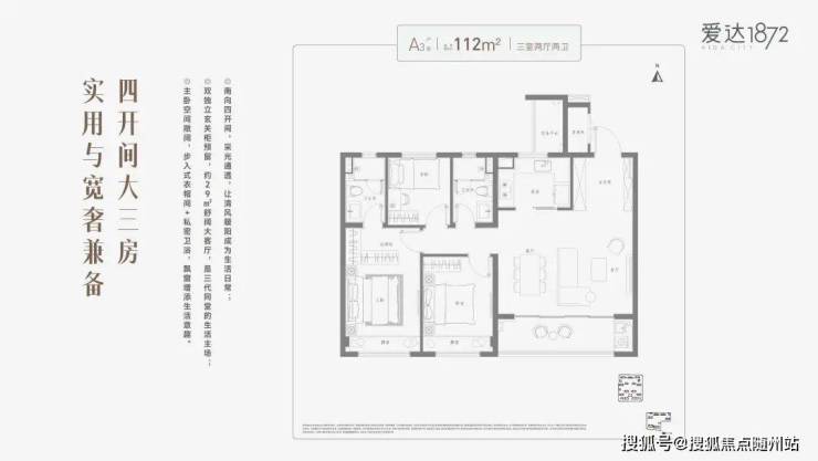 招商蛇口·爱达1872建筑面积约112㎡三室两厅两卫,以科学合理的规划笔触构筑一所“会生长的房子”,匹配家庭的每一个成长阶段。奢阔四开间,让舒适遍布于生活的每一寸肌理之间。