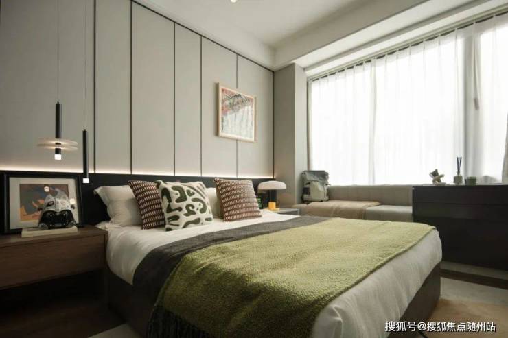 北向次卧,是为家庭成员准备的灵活空间,可以设计成电竞房、直播室、衣帽间等等,安放热爱和志趣。双飘窗设计,使空间尺度感进一步提升,朝南次卧,可实现床体飘窗一体化设计,扩大亲子活动空间。可以是自在独居、二人世界、三口之家,也足够容纳三代人一起居住所需。