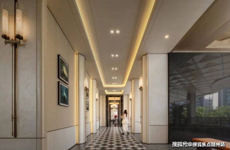 归家入口以约70米宽度、约9米高度的鎏金天幕打造,配合水景和迎客松,仪式感十足。业主可通过空中连廊或自动扶梯上到架空平台上的中心园林,享受创新三维归家体系。