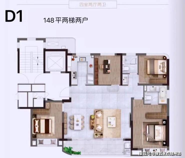 一梯一户方正格局,南北通透明亮,动静分离,品质私密。