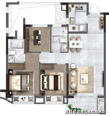 一梯一户户型方正,餐客连厅开间越7.2户型南北通透明亮,无过道浪费。