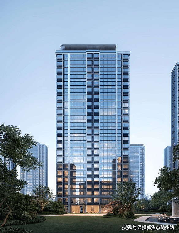 区域封面建筑:时刻与世界美学保持同步,全干挂建筑立面,大面积玻璃立面+金属铝板+局部石材干挂,简约大气,具有光影的质感,成就一座城市仰望的封面建筑,满足高知人士的身份和审美需求。同时,此等建筑选材的配置,也是目前市场上较为贵重的组合,对于物业的价值起了较大的支撑作用。