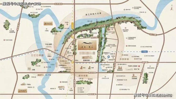 娱乐与生活配套:项目北侧500米为甬江公园,东侧为城市绿肺公园,为居民提供了休闲娱乐的好去处。同时,项目南约200米是顶级商业品牌-龙湖天街,将进一步提升居民的生活品质。