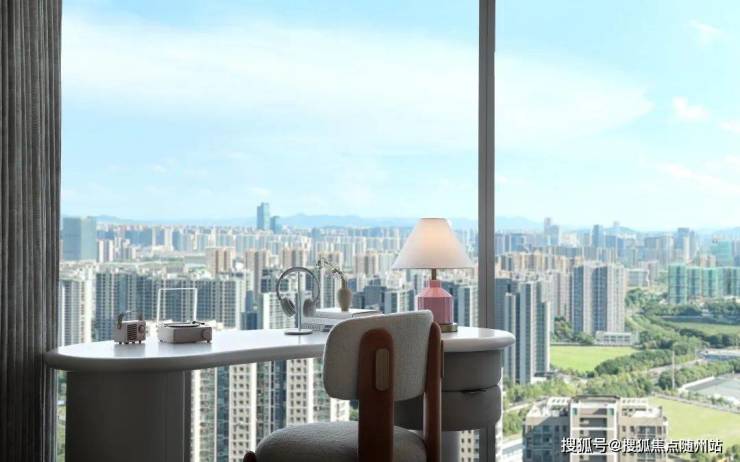 • 南向270°环幕视野,独揽钱塘江“日月同辉”天际线,幕墙采用2.4米超宽玻璃(杭州最宽),透光率92%。