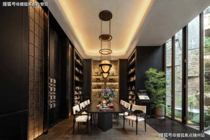 景观以“四境四巷”铺陈东方礼序,“五重归家”轴线串联宽约128米恢弘门庭、约15米叠石飞瀑、约13米榫卯转译现代穹顶等节点。约1300㎡下沉式庭院采用三层立体观景设计,15米叠石飞瀑再现《溪山行旅图》山水意境;私宴区铜丝钉珠绣吊灯璀璨生辉,泳池底部3000余片马赛克拼贴渐变艺术,历经数十道工序打磨。