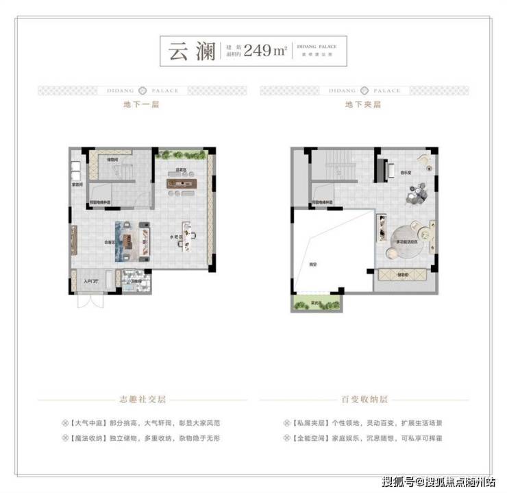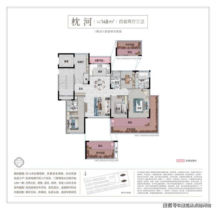 洋房空中院馆:奇偶错层设计实现约6米挑高露台,户户有花园,使用率超100%;最大面宽达16米,四开间朝南,全明电梯厅提升仪式感。