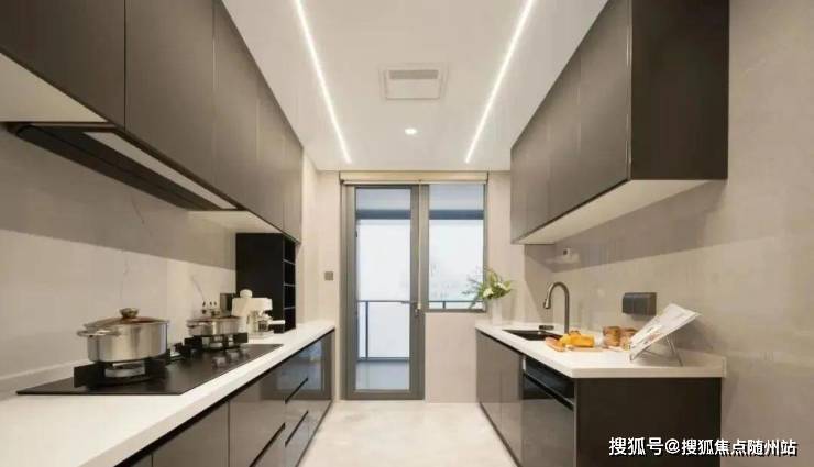 16项厨卫系统中,标配方太全隐升降款油烟机、三眼灶、15件套洗碗机。顶上有奥普凉霸,灶台有岩板背景墙,不只实用,还细致关照厨房的“清洁动线”。