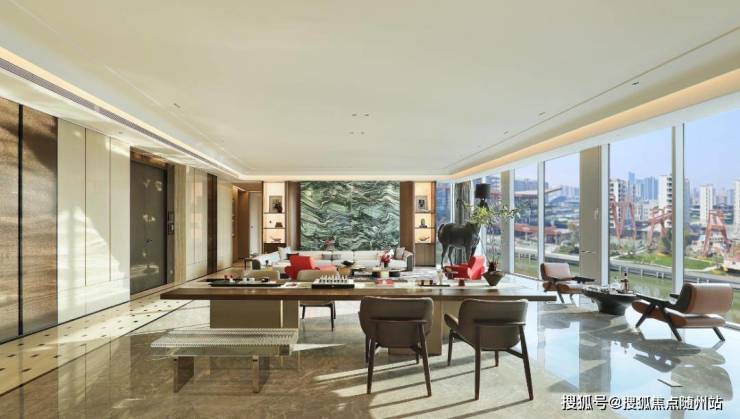 大悦城缦合最大的突破,在于其彻底抛弃了传统豪宅“房间简单叠加”的陈旧思维,转而引入了“场景化空间”与“高定社交美学”的先进理念。项目邀请国际知名设计团队LISO里所操刀,以现代极简风格为基底,融入运河文化元素,打造出对标国际顶豪的视觉与居住体验。
