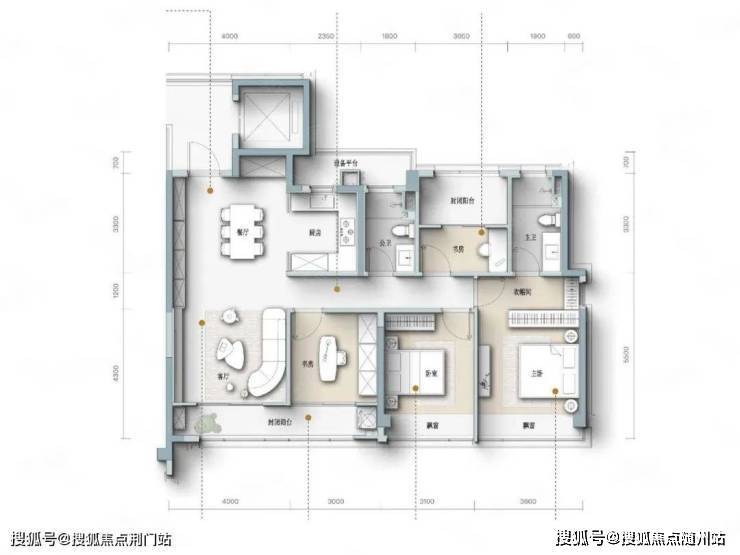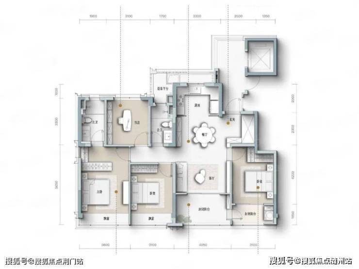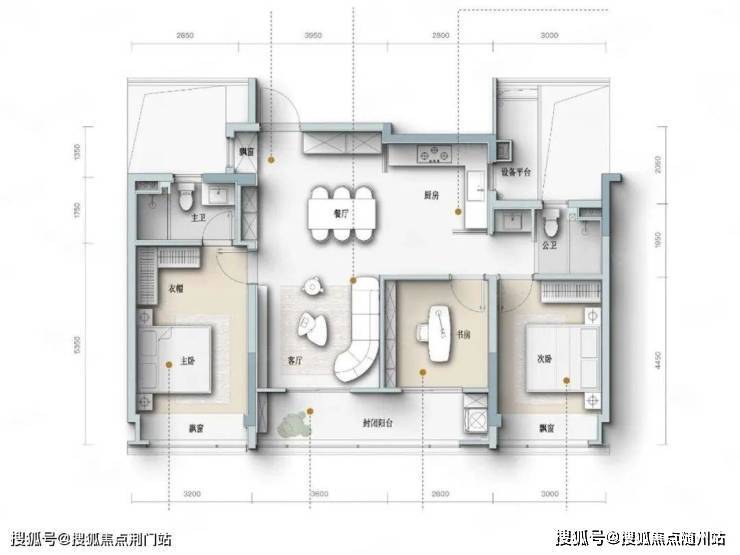 四开间朝南设计,主卧套房设计,宽景封闭式阳台。
