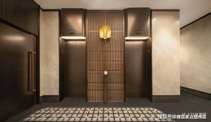 约60米全画幅门庭豁然展开,纳千年风雅于一境。两株超百岁树龄的罗汉松,跨越千里而来,静守世家门楣。金属格栅与天然奢石交织,光影流动间,勾勒出一幅现代东方的诗意长卷——天造一半,人造一半。门庭之上,良渚玉琮纹样化作迎宾重檐,西湖水韵幻为龙鳞叠水。东方符号融入现代构造,诠释世家气度与文化底蕴。