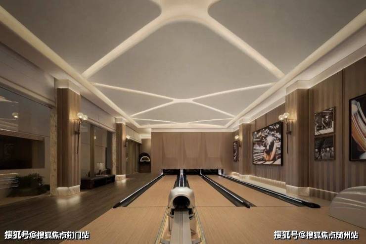 开阔场域内,跑步机阵列与绿植幕墙形成视觉韵律,以典雅东方美学为基底,融合现代奢华设计语言,几何线条勾勒刚柔并济的视觉层次,暗合保龄球运动中力与美的平衡哲学。