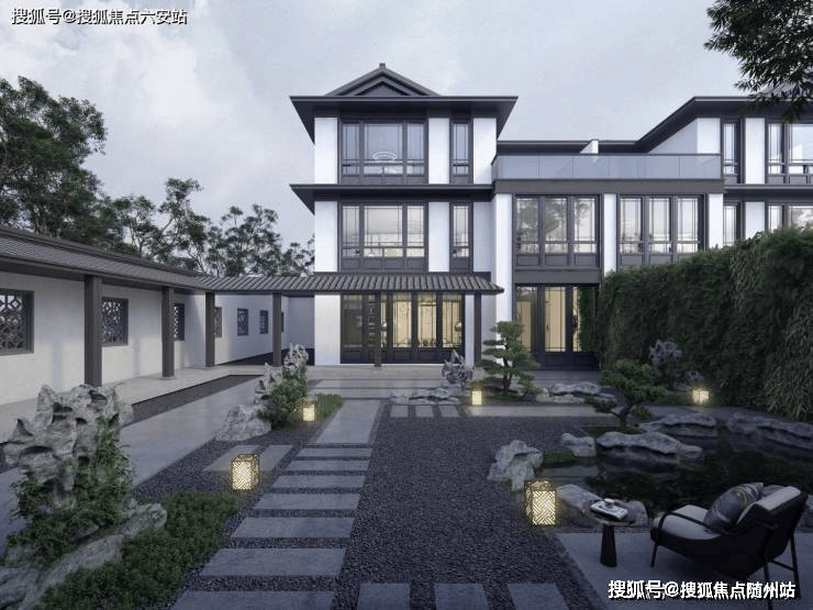 项目采用“现代时尚简约+中式轻奢雅致”的混合风格,避免了单一风格的单调,呈现出更有层次的美学体验。现代元素体现在简洁的线条、开放的布局与智能家居的适配中;中式韵味则通过建材选择、细节装饰及庭院营造来传递。