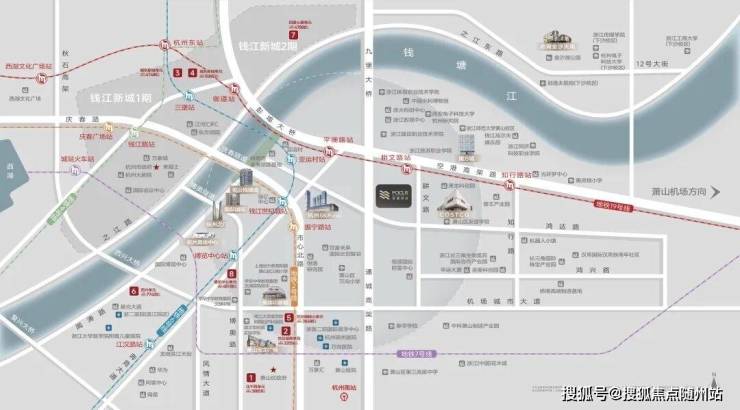 君潮润府所在的奥体东板块,与钱江世纪城的关系,可以说是“无缝衔接”。项目直距地铁19号线耕文路站仅约280米,一站直抵亚运村,两站萧山机场,三站杭州东站。这种交通的高效与便捷,放在杭州任何一个低密项目里,都算得上顶配。