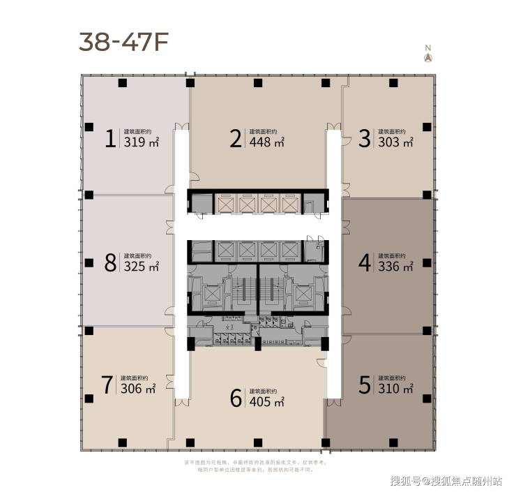 |恢弘首层+空中双大堂设计|约8.7m双层挑高首层大堂+跃38高层空中大堂,创领商务新风范。