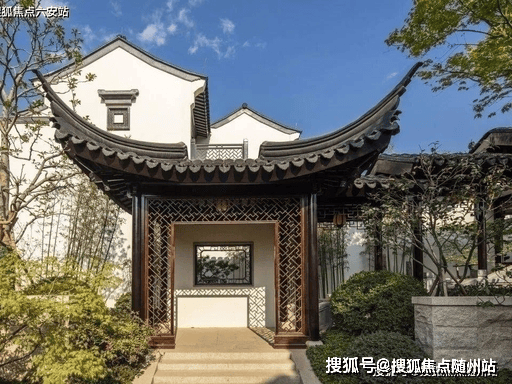 建筑风格纯粹中式合院,白墙黛瓦、飞檐翘角、马头墙、手工砖雕