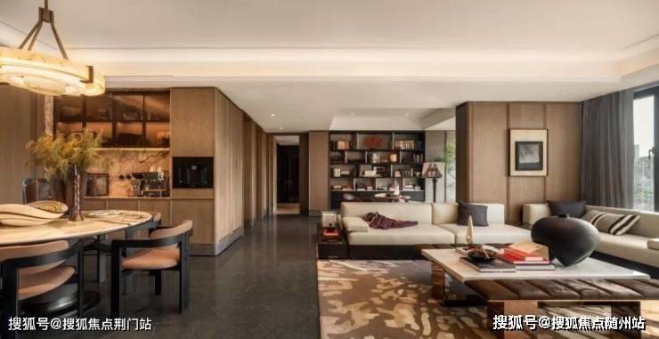 除了户型设计优秀,户内装修风格也同样精致。建面约230平户型装修设计来自于近境设计唐忠汉大师手笔,打造隐奢逸境风格。