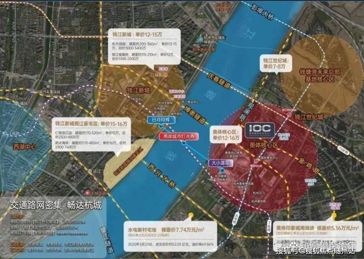 奥体的崛起,是一场城市与自然的默契共谋。钱塘江在此划出一道弧线,将亚运场馆的现代锋芒与江南的温润底色融为一体。十年前,这里还是一片待开发的滩涂;如今,核心区地价已突破7.7万元/㎡,江景大平层更成为高净值人群竞逐的“城市封面”。