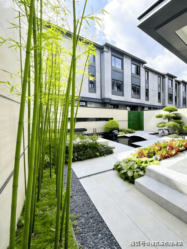 侧院诗意:沿墙植紫竹听雨落,近厅堂栽芝樱铺草坪,高低错落织就立体花境;