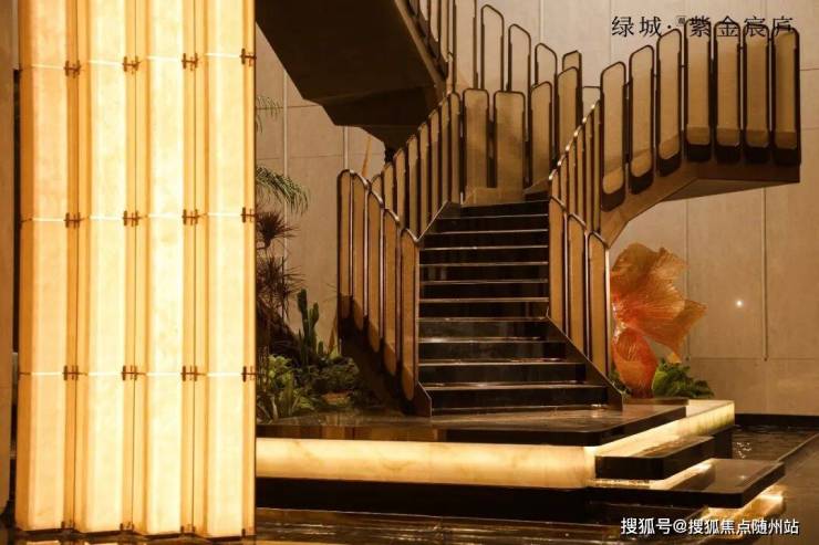 “九转云梯”贯穿上下两层空间,展开一幅立体的青绿山水长卷,米黄的温润、青绿的雅致、浅金的辉映,与定制家私、艺术装置相映成趣,大宅气场在光影流转中舒展。