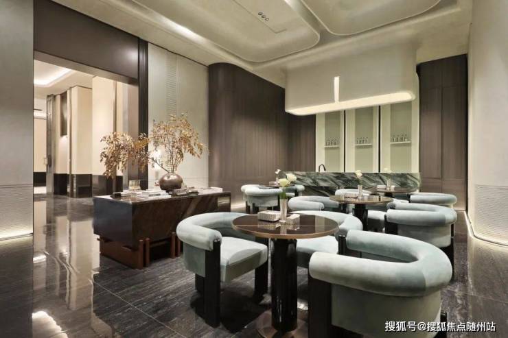 沿着Art deco风格旋转楼梯而下,进入更为私享的社交休闲主场: