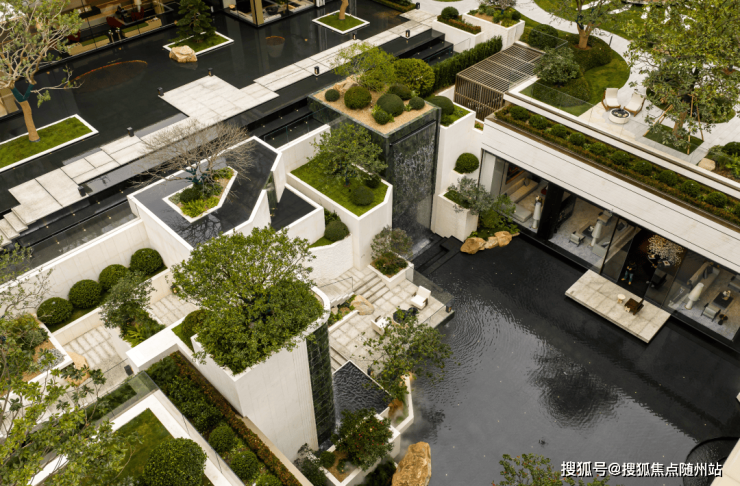 往里走,您会踏入一个立体的、全境洄游的园林。下沉庭院、镜面水院、阳光草坪,以多维垂直的角度,诉说着生活与风景的立体交融。