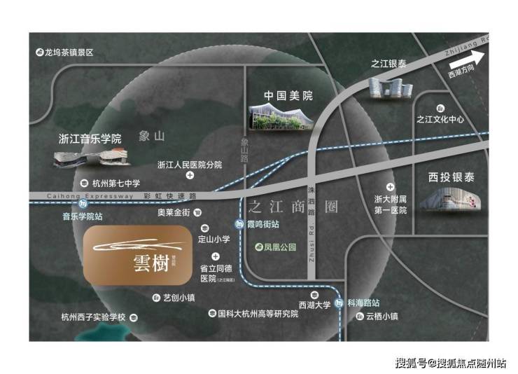 更难得的是,项目所在的之江板块,既是杭州“拥江发展”的重要节点,也是西湖文化景观的延伸带。从这里出发,驾车10分钟可达之江银泰城、西溪印象城,满足日常购物与社交需求;步行15分钟可至中国美院象山校区,感受艺术与人文的浸润;而西湖景区的核心景观(如雷峰塔、龙井茶园),更在30分钟车程内触手可及。自然与繁华的平衡,在这里被诠释得淋漓尽致。