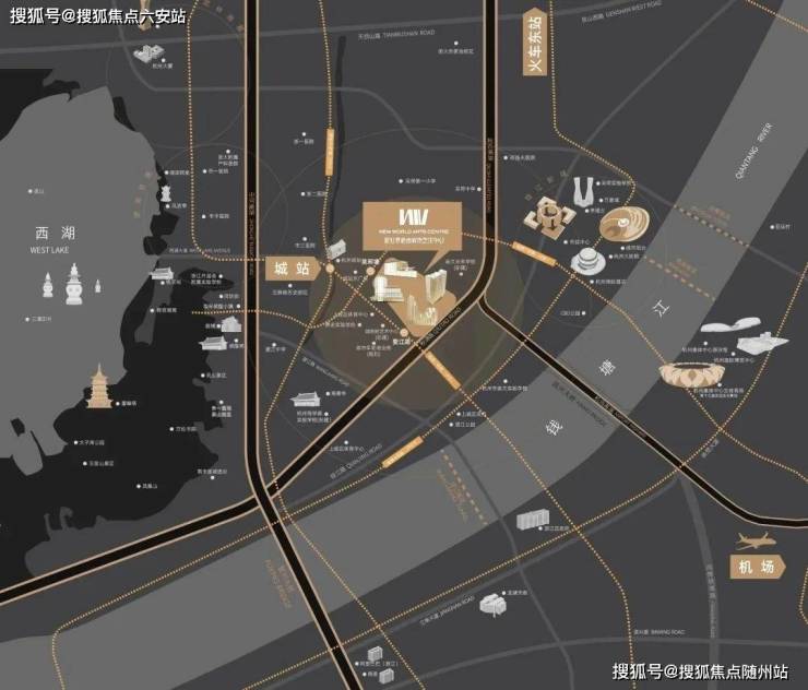 地理位置:项目紧邻西湖与钱塘江,距离西湖仅2.5公里,可同时享受城市繁华与自然景观。