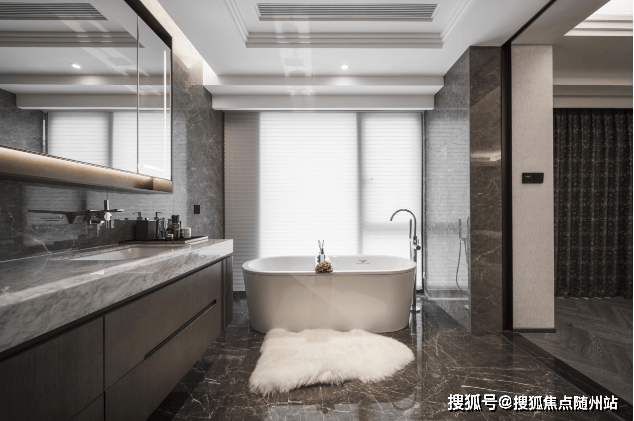 用材:欧努灰 / 冰岛白天然大理石、人字拼木地板