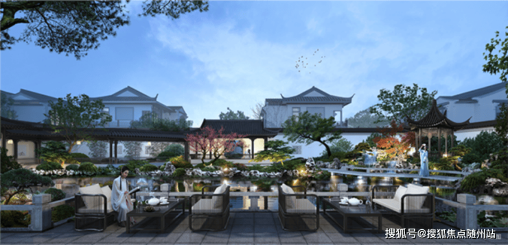 以江南景致为蓝本,营造古典园林景观的风雅气韵。结合亭台、水榭、回廊、水槛等风物,将传统东方的人居理想、艺术审美、生活品味等融入一草一木,闲坐厅中,即可赏江南烟雨美景。