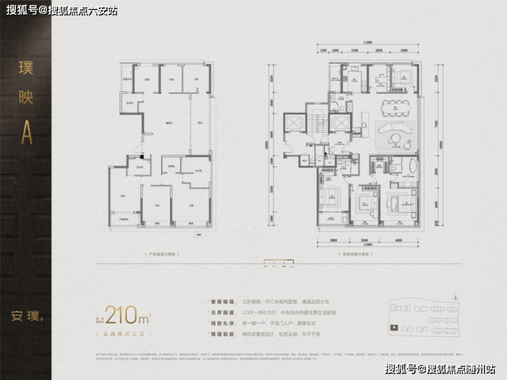 在户型设计上,安璞同样表现出众。约210㎡户型为五房三卫,其余户型均配备四卫,并实现三间套房布局,极大提升了居住的私密性与舒适度。