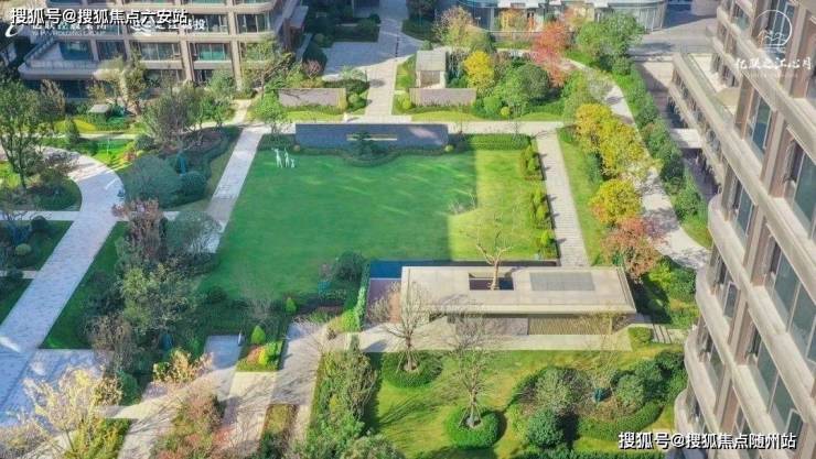 景观灵感源自《富春山居图》,打造三进院落、600㎡水景及500米林荫跑道,融合自然意境与现代美学。