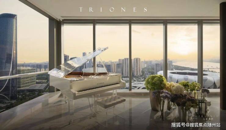 建面约405平方米户型由水平线设计创始人琚宾操刀,南向直面杭州之门,客厅面宽达12米,餐客厅一体空间可容纳20人宴会。而建面约875平方米楼王则拥有270°全景落地窗,揽江、观城、望山三重景观尽收眼底。