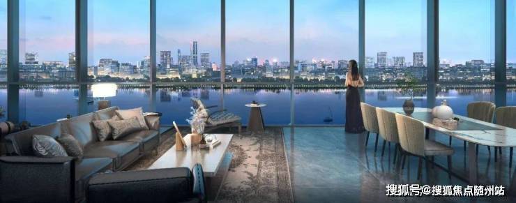 客厅大面积的落地窗更好的将疏朗的江景引入室内,☎【售楼热线】:400 816 3856 ☎⫷回流动线的设计,丰富空间节奏。设计透过色彩、家具、艺术品等选择和布置,调度动线,落实功能。打造不被格局局限并可自由切换生活场景模式的居住空间,使家庭成员们可以共享所有活动,实现更多的情感互动。