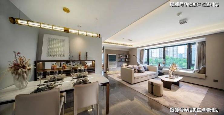 · •10米王者大厅:开间约10米,横跨整个客厅,搭配270°宽屏取景框,可将城市天际线、樱花公园绿意尽收眼底;