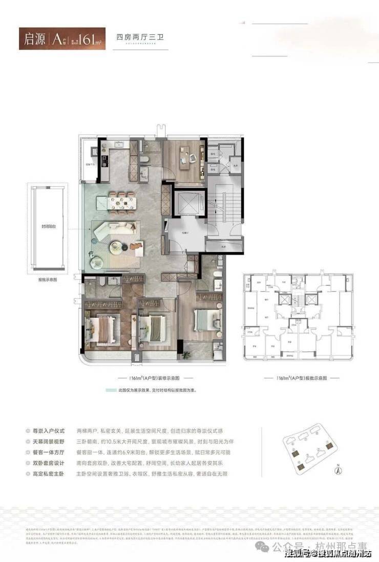 建面约185㎡与230㎡户型,均实现约16-17米的南向超大面宽,可布置三间南向卧室与阔绰客厅。设计上采用双套房、多卫布局,建面约230㎡户型主卧面宽达4.3米以上,兼顾亲密与独立。